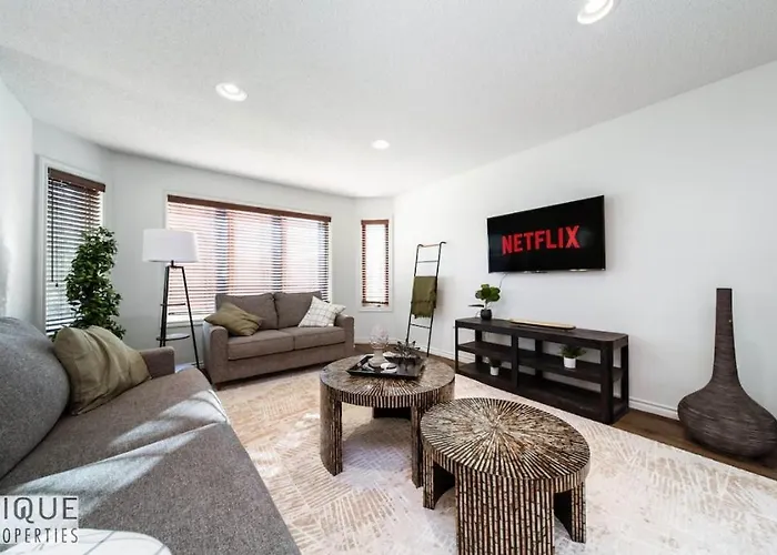 El apartamento 6Bdrm Chic Modern Home-Fireplace-Bbq-Sleeps 18! Edmonton está situado a unos 3 km de los Castillos de Hielo, y a poco más de 25 minutos a pie del Edmonton Event Centre. El apartamento ofrece instalaciones modernas, como Wi-Fi y servicios esenciales como un aparcamiento para los que viajan en coche.
